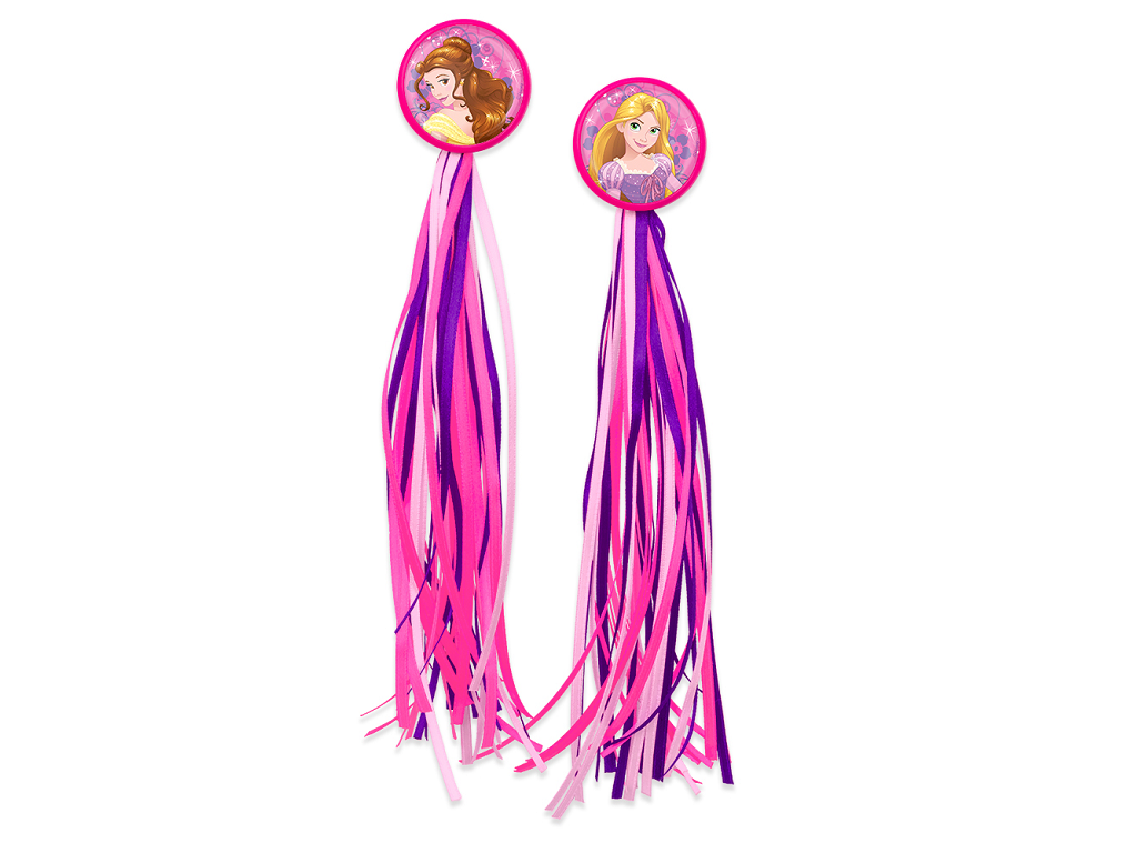 Okrasne resice Princess, za kolesa in skiroje. Pisani trakovi, pritrjeni na ročaje koles ali skirojev, naredijo otrokovo vožnjo privlačnejšo in zabavnejšo.