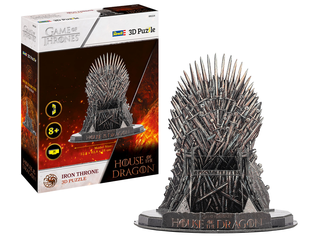 Revell 3D puzzle GOT Iron Throne je izjemna 3D sestavljanka, ki predstavlja ikonični železni prestol iz ene najbolj uspešnih televizijskih serij, Game of Thrones. Ta prestol, simbol moči, je izdelan iz meča vseh, ki so padli med njegovim vzponom, in tisti, ki sedi na njem, vlada vsem Westerosu in Sedmim kraljestvom. Revell 3D puzzle je natančna replika železnega prestola, ki bo zagotovo navdušila vsakega oboževalca serije.