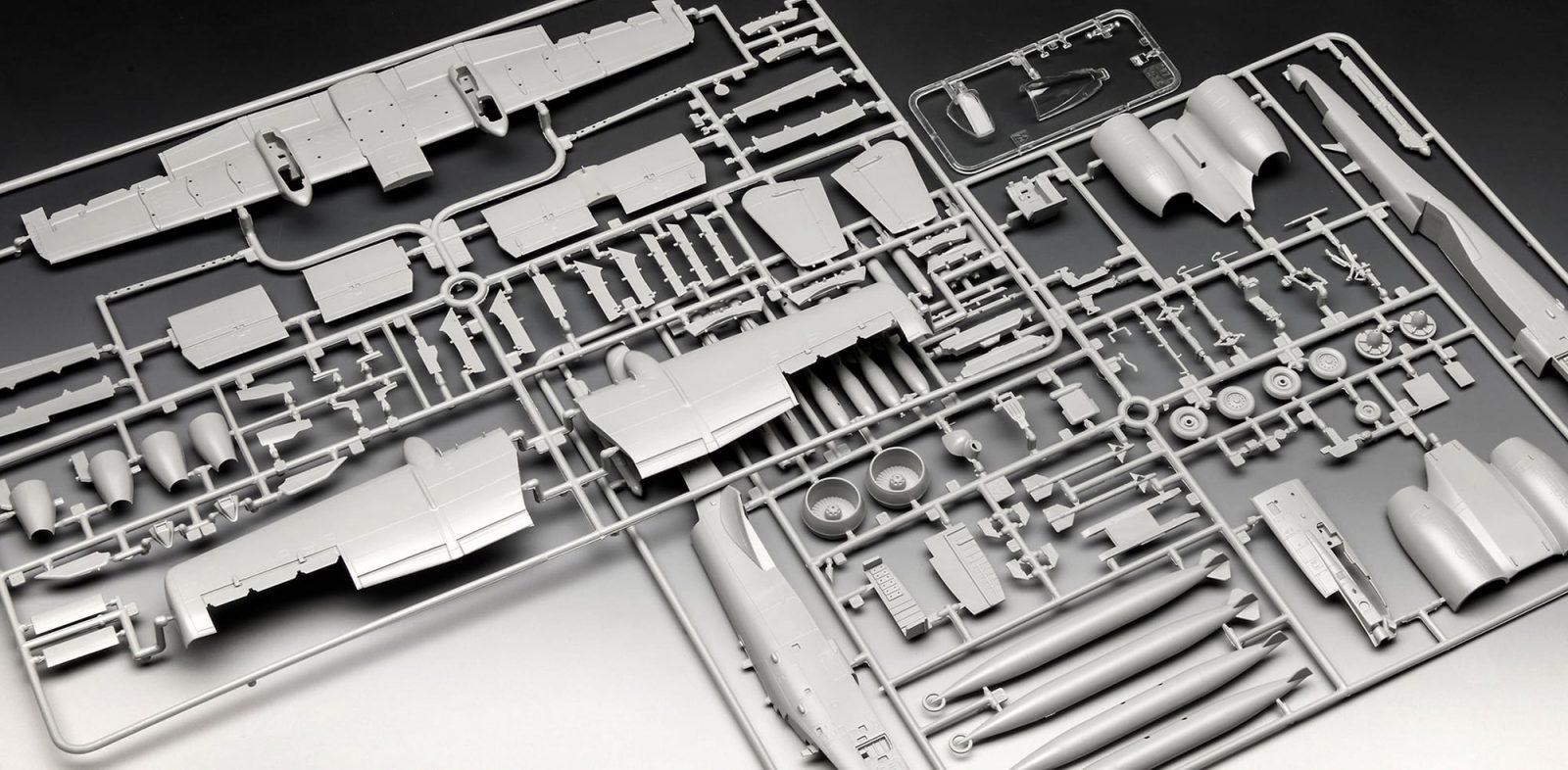 - Komplet iz plastičnega modela (ni sestavljen), ilustrirana, večjezična navodila za gradnjo, nalepke