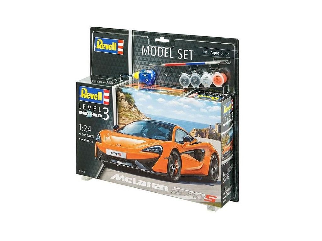 Revell Model Set – McLaren 570S 07051 – vsebuje vse kar potrebujete za izdelavo modela avtomobila McLaren 570S. Ta je znan po tem, da doseže končno hitrost 328 km/h.