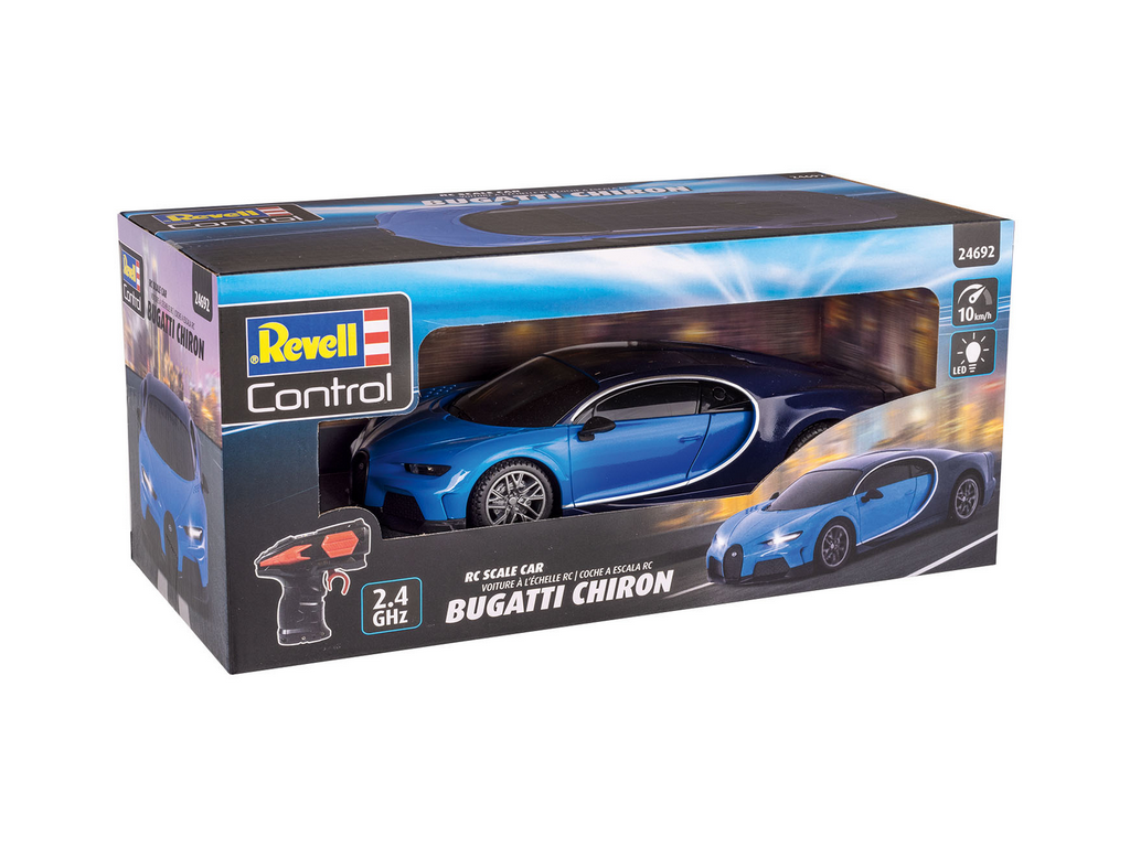 Revell RC Bugatti Chiron 1:24 je priporočljiv za otroke, stare 8 let in več, in prinaša občutek super športnega avtomobila v miniaturi. Ta daljinsko voden avtomobil je natančna reprodukcija pravega Bugatti Chirona, znanega po najvišji hitrosti 420 km/h. Z združevanjem kompaktnosti z impresivnim dizajnom in LED sprednjim osvetljenjem, ta model zagotavlja edinstveno izkušnjo vožnje.