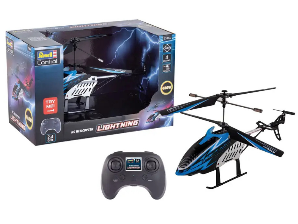 Revell RC helikopter Lightning poskrbi, da dolgčas v dnevni sobi nima nobene možnosti! S popolno LED osvetlitvijo in napredno stabilizacijsko senzoriko vsak let postane prava predstava, ki jo lahko natančno obvladate – tudi če ste začetnik.