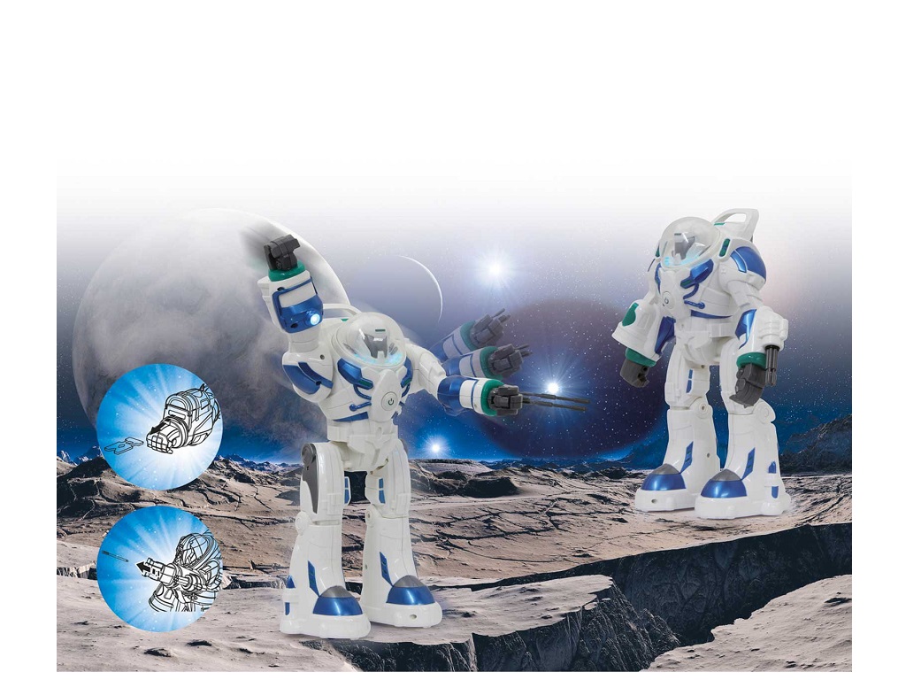Robot na daljinsko vodenje Spaceman je zabaven prijatelj malčkom. Ta je narejen iz visokokakovostne plastike, ki ima gibljive sklepe s pomočjo katerih lahko pleše. Vgrajene ima zelo privlačne LED lučke, zaradi katerih ga otroci občodujejo. Glasba za ples prihaja iz integriranega zvočnika. Vse možnosti robota je moč opravljati z daljinskim upravljalnikom. Lahko se vključi demo funkcija, s katero bo robot avtomatsko ponavljal določene gibe. Robot zna tudi izstreljiti disk iz roke.