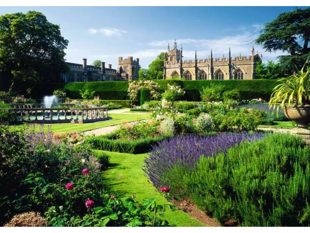 Motiv kraljičinega vrta in gradu – romantičen prizor z bogatimi detajli.