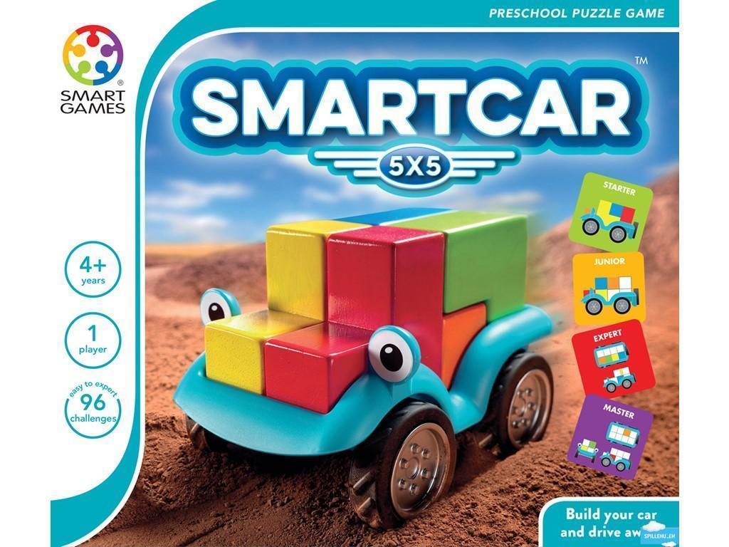 V tej edinstveni logični igri izzvite otroke, da iz petih različnih blokov sestavijo avtomobil! SmartCar 5×5 vključuje avtomobil in 5 lesenih kock v 5 različnih barvah. Otroci rešijo vsakega od 96 izzivov tako, da vse bloke pravilno namestijo v avto v skladu z napotki. SmartCar 5×5 je sestavljanka in igrača… rešite izziv ali se z avtomobilom zapeljite na testno vožnjo!