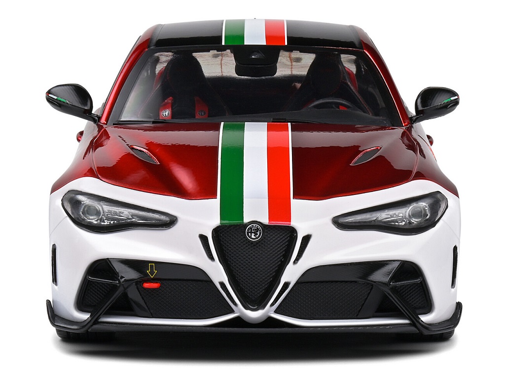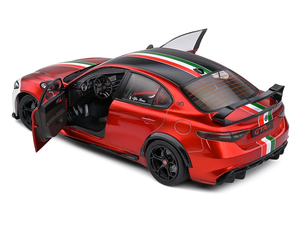 Solido Alfa Romeo Giulia GTA-M Tricolore Mugello 1969 2022 1:18 je vrhunski zbirateljski model, ki združuje sodobno italijansko eleganco z zgodovinskim športnim duhom. Ta različica Giulia GTAm iz leta 2022, predstavljena v dirkaški trikolorni poslikavi, je poklon legendarni udeležbi modela Giulia GTAm na dirki Mugello Grand Prix leta 1969.