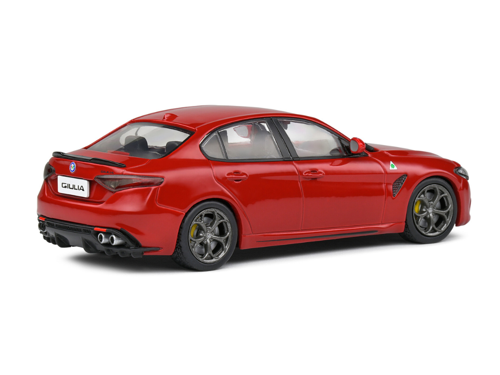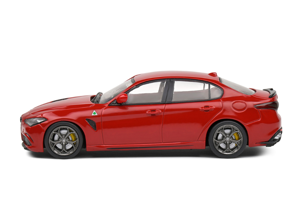 Prava različica je opremljena s 2,9-litrskim V6 biturbo motorjem, ki razvije impresivnih 510 konjskih moči. Razvita v sodelovanju s Ferrarijem, doseže pospešek od 0 do 100 km/h v le 3,9 sekunde, hkrati pa ohranja eleganco limuzine, primerne za vsakodnevno vožnjo. Solido je v modelu zvesto reproduciral prepoznavne oblikovne elemente, kot so agresiven sprednji odbijač, aerodinamične linije, štiri izpušne cevi ter značilni štiriperesni deteljici (Quadrifoglio) na blatnikih.