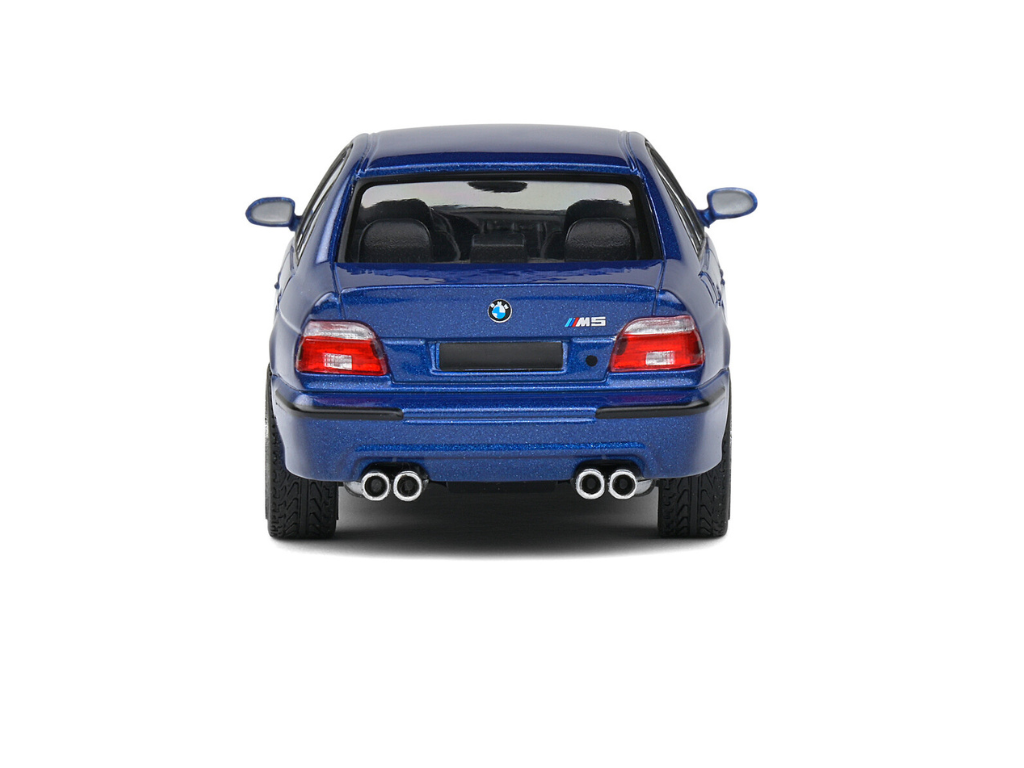 Solido je pri svojem modelu zvesto poustvaril vse značilne elemente E39 M5 – od prepoznavne dvojne ledvičaste maske, skrbno oblikovanih platišč in športnih odbijačev do realističnih žarometov ter zadnjih luči. Modra barva z visokim sijajem poudari prestižen značaj vozila, medtem ko natančno izvedeni detajli pričarajo avtentičnost pravega avtomobila.