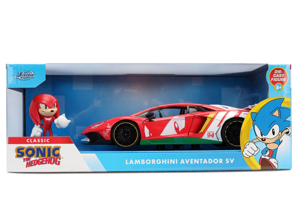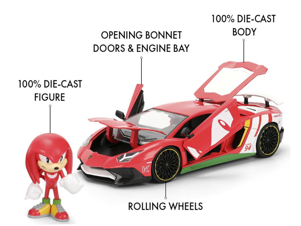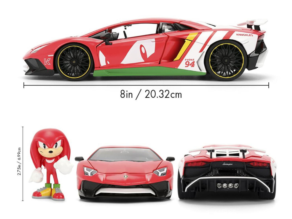 - vključuje 1 vozilo Lamborghini Aventador SV (19 cm) in 1 figuro Knuckles (7 cm)