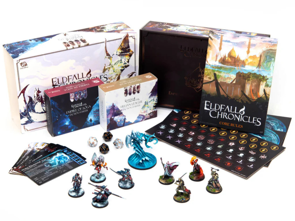 Starter Set – Empire of Soga vs Helian League prinaša popolno začetniško izkušnjo za dva igralca v svetu Eldfall Chronicles. Ta set vsebuje vse, kar potrebujete za zbiranje in igranje dveh popolnoma igranih frakcij – Empire of Soga in Helian League – vključno z edinstvenim pošastnim likom Water Elemental.