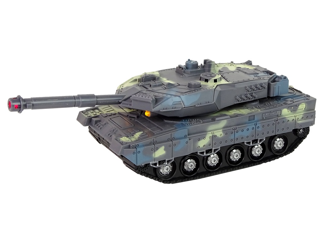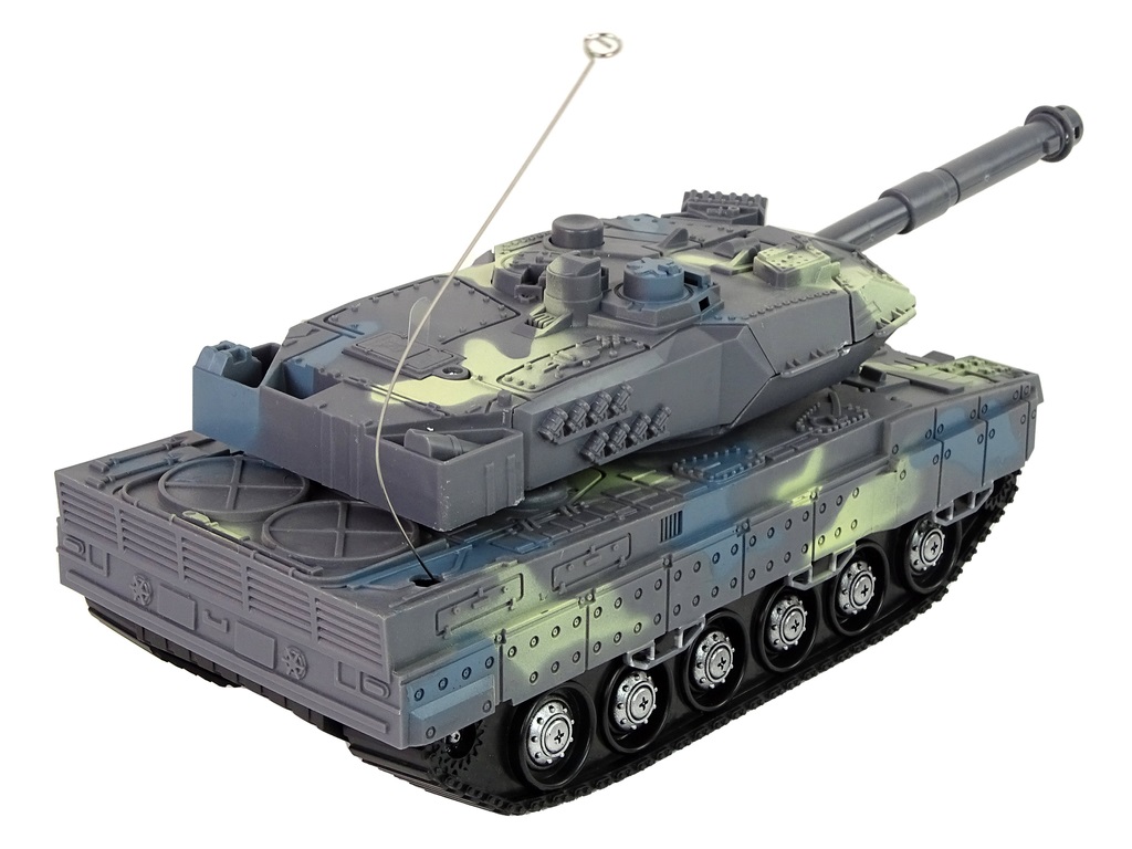 Tank ima vojne barve, goseničaste pnevmatike pa posnemajo vožnjo pravega tanka. Top je nastavljiv, ob streljanju iz topa se sliši zvok in prižge rdeča LED luč. Dodatna prednost je vrteči top.
