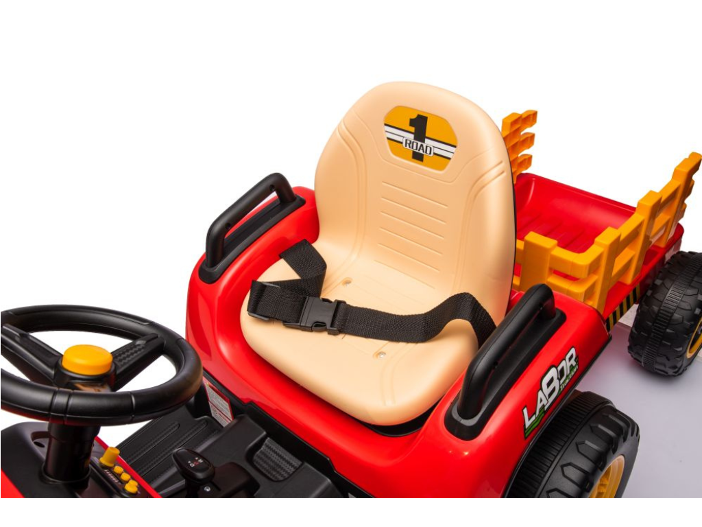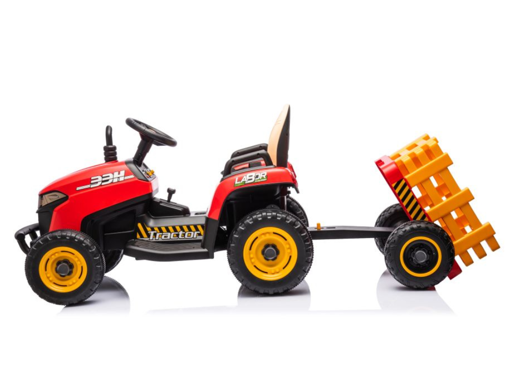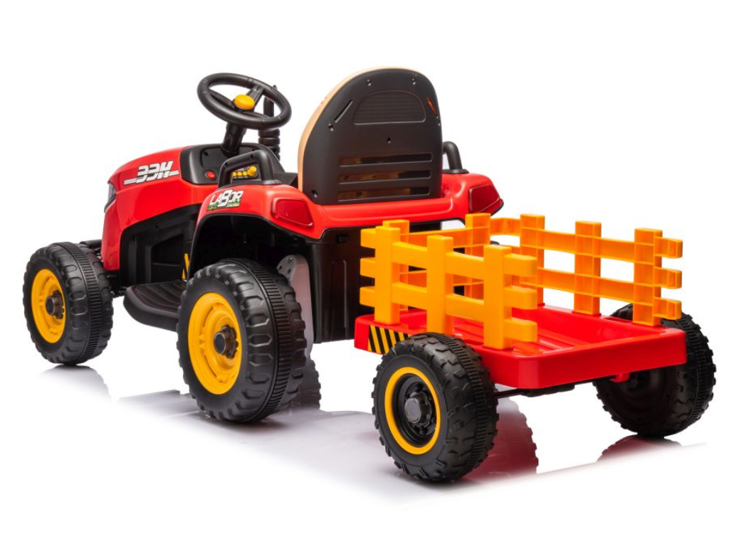 Traktor na akumulator BBH-030 rdeč v atraktivni rdeči barvi je odlična izbira za vse male ljubitelje vozil in kmetijskih strojev. Z realističnim videzom, udobnim sedežem iz mehke eko kože in stabilnimi EVA kolesi omogoča varno ter zabavno vožnjo na različnih površinah. Traktor poganjata dva zmogljiva motorja, ki zagotavljata dovolj moči za gladko vožnjo, hkrati pa omogočata prilagodljivo hitrost med 3 in 7 km/h.