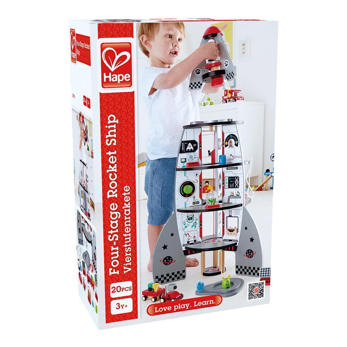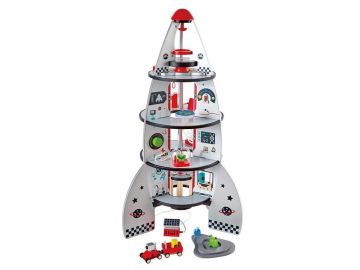 Z raketo potuješ v vesolje. Pristani na drugem planetu. Mogoče spoznaš bitja iz vesolja. Raketa je sestavljena iz štirih nivojev. Velikost izdelka 121x121x188cm. Izdelek vsebuje 20 kosov za aktivno igro in pripovedovanje zgodb. Primerno za otroke od 3.let dalje.