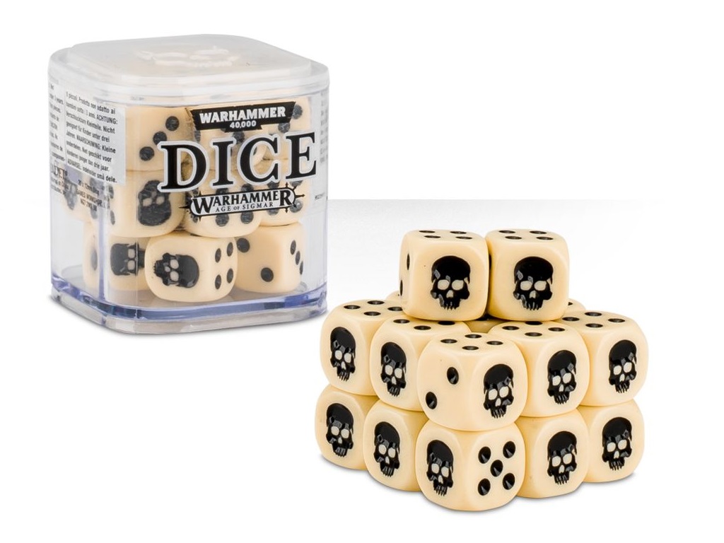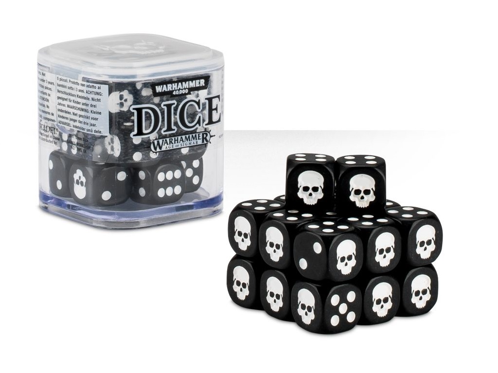 Embalaža iz trde in kompakte plastike shranjuje 20 igralnih kock, katerih dimenzija znaša 1,2 cm. Na mestu števila 1 se nahaja okostnjak.