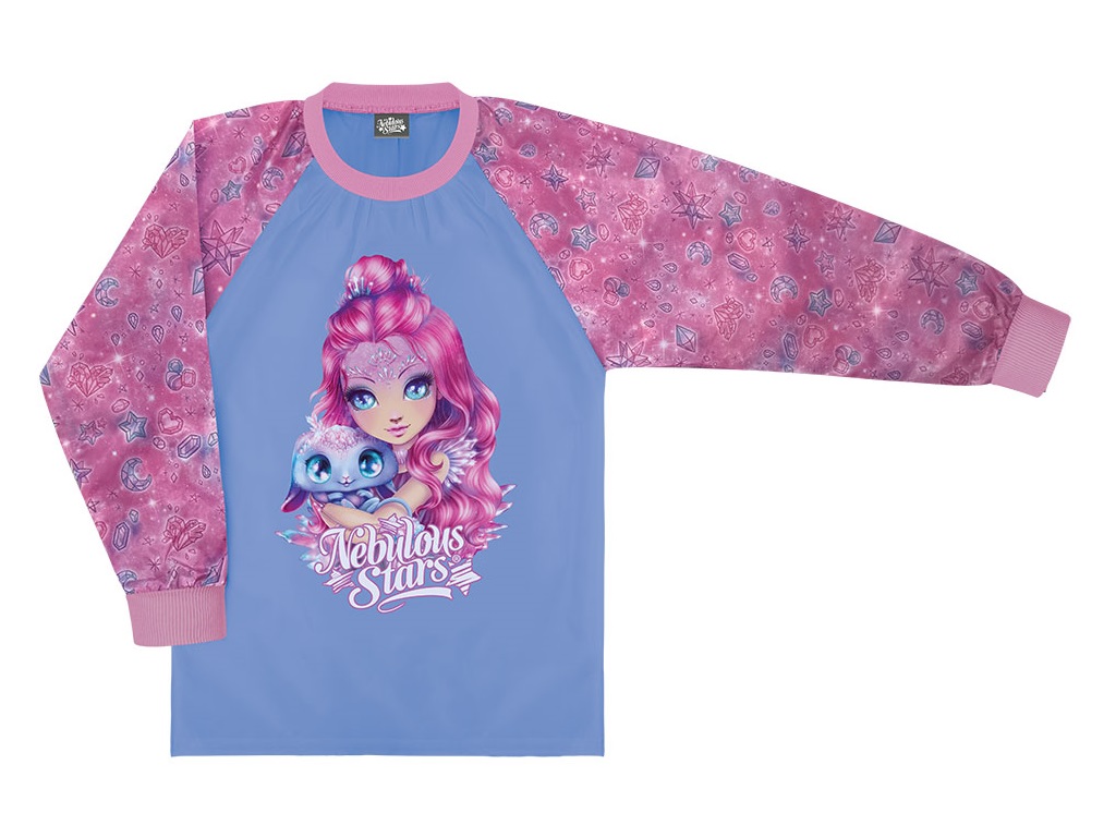 Zaščitno ogrinjalo za barvanje – Cristalia & Agatha – Naj domišljija steče brez omejitev! S čudovitim zaščitnim ogrinjalom z motivom Cristalie in Agathe bodo otroci lahko ustvarjali, risali in barvali, ne da bi pri tem umazali svoja oblačila. Majica z dolgimi rokavi na elastiko in zaščitnim ovratnikom je zasnovana posebej za male umetnike, ki se radi predajo barvam in ustvarjanju.
